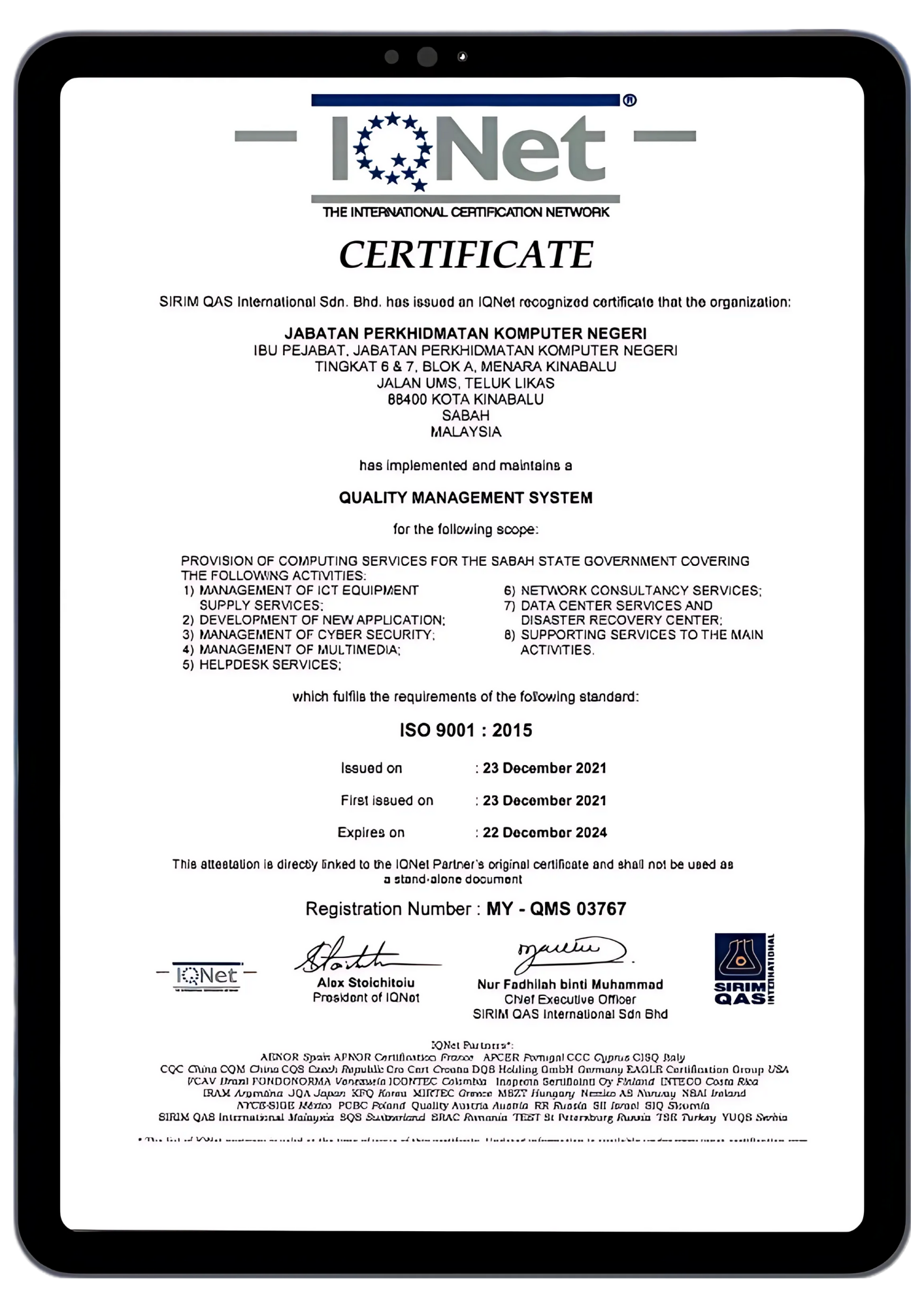 No. Pensijilan: QMS 03767